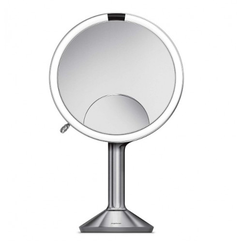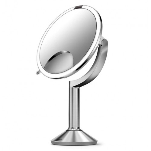 Сенсорне дзеркало Trio від Simplehuman - це 3 дзеркала в одному. Одна сторона має 5-ти кратне збільшення, тому Ви можете роздивитися обличчя у найдрібніших деталях. За допомогою швидкого і легкого повороту дзеркала на інший бік, Ви можете бачити зображення у натуральну величину, а для якісного нанесення макіяжу використовуйте вікно з 10-ти кратним збільшенням. Запатентована система освітлення tru-lux імітує сонячне світло, дозволяє побачити повну кольорову варіацію щоб Ви знали коли ваш макіяж правильний і бездоганний. Існує також налаштування слабкого освітлення. Яскравість сенсорного управління забезпечує швидке та інтуїтивно зрозуміле налаштування безперервним діапазоном яскравості. Датчик руху автоматично освітлює дзеркало, коли ваше обличчя наближається. Розумне дзеркало оснащене бездротовою зарядкою, одна зарядка триває до 5 тижнів. В комплект входить дзеркало, USB- кабель і серветка для протирання дзеркальної поверхні.