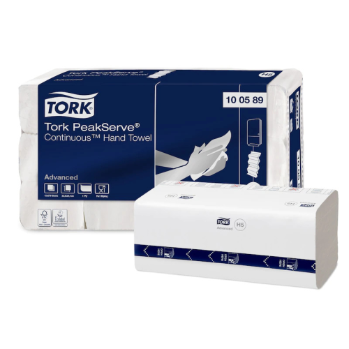 Призначені для використання в диспенсерах Tork H5 з системою безперервної подачі PeakServe. Компактні розміри спресованої пачки дозволяють помістити в диспенсер понад 2100 рушників за 1 заправку.