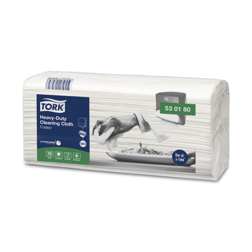 Неткані промислові серветки Tork 530180 добре вбирають і зберігають міцність навіть у вологому стані. Можна використовувати разом із засобами для чищення. Сумісні з диспенсерами із системою W4.