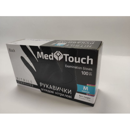 Рукавички оглядові нітрилові розмір M, чорні / 100 шт Med Touch Black