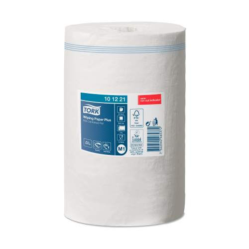 Двошаровий універсальний протиральний папір Tork Плюс ідеально підходить для видалення рідини і протирання рук. Матеріал сумісний з диспенсерами Tork® з центральною витяжкою; це компактне універсальне рішення для виробничих приміщень, де потрібно протирати руки і поверхні.