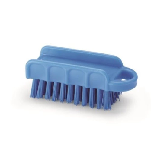 Невелика щітка з ручкою та короткою щетиною середньої м'якості (Ø 0,5мм) виконана з поліпропілену та полібутилентерефталату (PP-PBT) синього кольору.