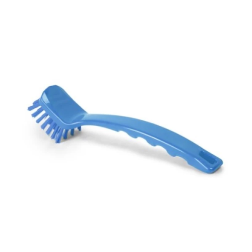 Невелика щітка з длинною ручкою та короткою щетиною середньої м'якості (Ø 0,5мм) виконана з поліпропілену та полібутилентерефталату (PP-PBT) синього кольору.