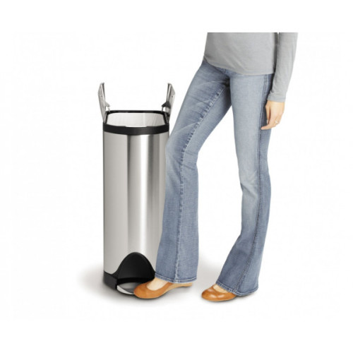 Відро з педаллю має інноваційний дизайн з кришкою у вигляді крил метелика, яка відкривається посередині. Витончена, просторово ефективна форма дозволяє максимально використовувати вузькі місця в приміщенні. Міцна педаль зі сталі і запатентована технологія кришки Shox забезпечує плавну роботу урни протягом довгих років. Підходять мішки з кодом K. Кришку можна тримати відкритою стільки часу, скільки Вам знадобиться для тривалих господарських робіт. На дні відра прикріплені гумові прокладки, які дозволяють йому не ковзати поверхнею, не дряпати підлогу і бути стійким. Відро виготовлене з нержавіючої сталі зі спеціальним покриттям FPP (fingerprint-proof), на якому не залишається слідів відбитків пальців і патьоків. Мішок у внутрішньому відрі легко замінити, вийнявши на кілька сантиметрів і нахиливши.