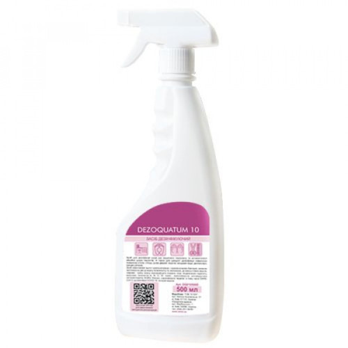 Засіб для дезінфекції з розпилювачем для швидкої дезінфекції невеликих поверхонь (столи, стільці, ручки дверей, поручні, змішувачі води, диспенсери, кришки унітазів). Засіб ефективно проти грам позитивних та грам бактерій, проявляє противірусну дію до вірусу поліомієліту та, відповідно, до менш стійким вірусів, зокрема - грипу, вірусу імунодефіциту людини, кору, епідемічного паротиту, вірусних гепатитів А, В, С, D, норо-, аденовірусам, ротавірусних гастроентеритів, ECHO, Коксакі, коронавірусу людини, в тому числі SARS-CoV-2, що викликає COVID-19, і інших вірусів.