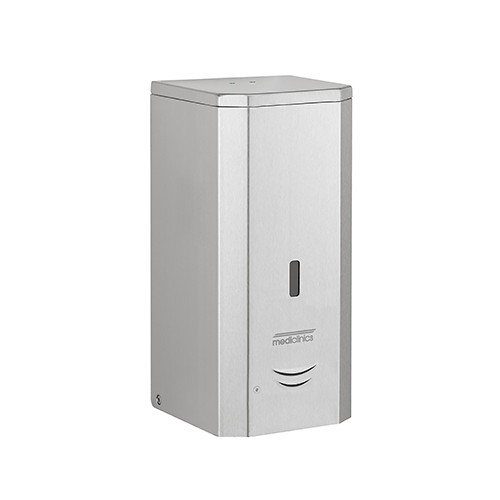 Дозатор для дезінфікуючого засобу ємкістю 1л, виготовлений з нержавіючої сталі AISI 304 товщиною 0,8 мм, сатиновий, встановлюється безпосередньо на стіну і автоматично вмикається при піднесенні руки. Працює від 6шт. лужних батарейок типу АА ( в комплект не входять) або з AC-адаптером змінного струму, який входить в комплект. Ця модель дозатора має функціональний, міцний і модний дизайн, який відповідає новому асортименту аксесуарів для ванних кімнат Mediclinics, що дозволяє цьому диспенсеру ідеально доповнювати будь-який простір.