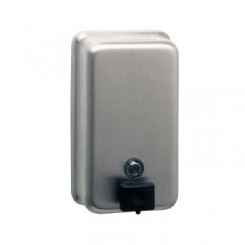 Дозатор рідкого мила помповий вертикальний в стильному дизайні з використанням антивандального покриття із сатиновим оздобленням. Має корозійностійкий клапан, який продовжує термін служби дозатора. Дозуюча кнопка на корпусі з якісного пластику чорного кольору. Дозатор помповий з можливістю використовувати рідке мило з нейтральною рH.