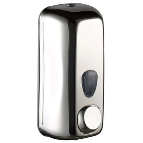 Призначений для використання будь-якого різновиду мила. Тип дозатора: кнопковий, наливний. Віконце на корпусі дозволяє зручно відстежувати кількість мила або гелю для душу всередині нього.