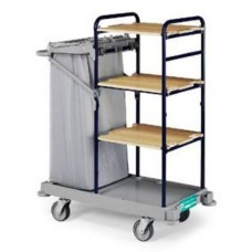 Візок готельний з лакованими стійками, 4-ма колесами діаметром 125мм і мішком для сміття призначений для прибирання у 15-18 готельних номерах.Мішок 90л із сірого поліестру входить…