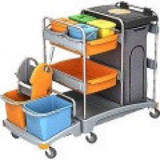 ХАРАКТЕРИСТИКАПризначення Візок для покоївокРама Рама з нержавіючої сталі з напиленнямРозміри, мм (ДхШхВ)  1175х640х1120Основа ПластиковаВідро 6 л., шт. 4Кошик ТакВіджимання НіМішок для сміття 120 л., шт.…