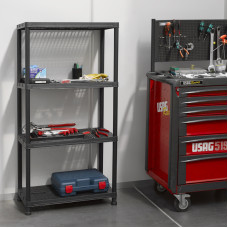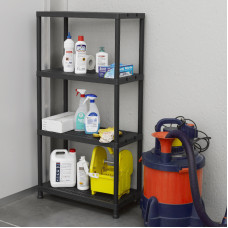 ХарактеристикиДовжина/ширина/висота:71х35х138 смКолір: чорнийКількість полиць: 4Розмір упаковки: 71x35x14,5 смОпис і застосуванняУніверсальний пластиковий стелаж на 4 полиці Universal Vent 73-4. Стелаж можна застосовувати для побутових потреб: зберігання будь-яких неважких речей…