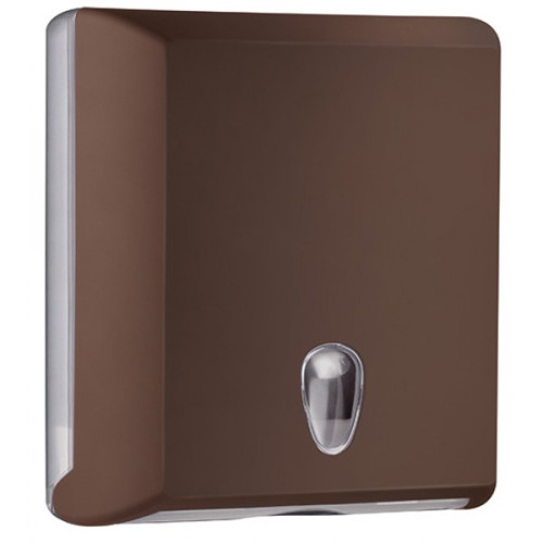 Тримач паперових рушників COLORED має новий дизайн, який не залишить Вас байдужим. П`ять кольорів на вибір: зелений, чорний, оранжевий, коричневий, блакитний дозволяють зробити Вашу санітарну кімнату стильною і сучасною. Тримач виготовлений з високоміцного пластику з покриттям коричневою фарбою "Soft Touch", яка створює ефект "прогумованої" поверхні і додаткового захисту корпусу від пошкоджень. Рекомендуємо використовувати разом з обладнанням серії COLORED. Тип рушників що використовуються - в пачці Z -складки. Простий в обслуговуванні, бічне відкривання кришки - легко перезаповнити. Замикається на ключ. Оглядове вікно у вигляді краплі дозволяє контролювати наявність паперу в дозаторі.