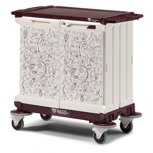 Тележку гостиничную MagicArt ANTHEA 202R-02 можно приобрести под заказ. Предлагается для обслуживания 8/10 гостиничных номеров. Графический рисунок- ANTHEA. Обе дверки закрываются на ключи.