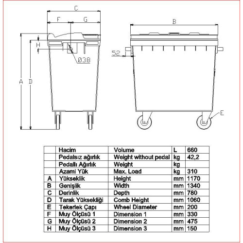 Контейнеры ТБО 660 л используются для сбора бытовых и промышленных отходов коммунальными хозяйствами, на производствах, частными лицами. Пластиковые мусорные контейнеры имеют ряд преимуществ перед металлическими: весят в трое меньше, не ржавеют, не гниют и имеют лучшие санитарно-гигиенические свойства. Пластиковый бак для мусора на 660 л производства iPlast благодаря высокому качеству и техническим характеристикам выгодно отличается перед аналогами. Он полностью соответствует европейскому стандарту DIN EN 840. Изготавливаются контейнеры методом литья под высоким давлением из сырья самого высокого качества – первичного полиэтилена. Прочный материал не теряет свои свойства даже при экстремальных условиях, диапазон температур эксплуатации от – 20 до +40 С.