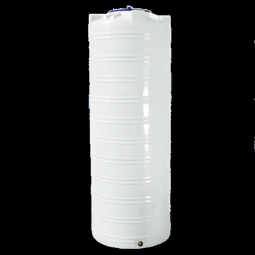 Емкость вертикальная 1000 литров узкая пластиковая белого цвета, изготовлена из полиэтилена, предназначенного для контакта с пищевыми продуктами и питьевой водой.