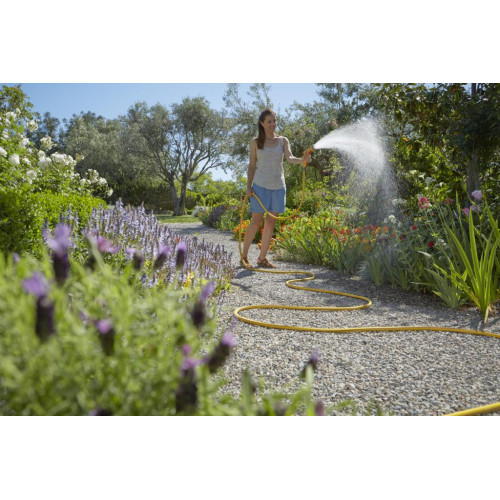 Специальное вязаное армирование по технологии TNT предотвращает деформацию шланга при скручивании; внешний слой из ПВХ защищает от повреждений, изготовлен по технологии Ergo Rib, благодаря которой шланг комфортно держать в руке. Яркий желтый цвет позволяет Вам без труда увидеть шланг на Вашем участке. Материалы, из которых состоит шланг, являются безопасными для человека и окружающей среды - не содержат фталатов, тяжелых металлов и вредных токсинов.