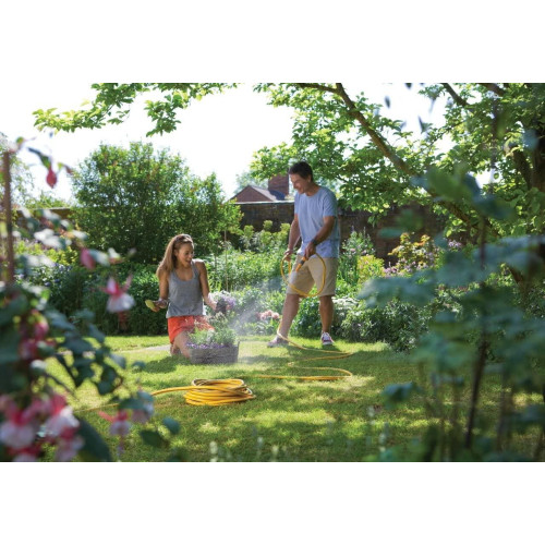 Специальное вязаное армирование по технологии TNT предотвращает деформацию шланга при скручивании; внешний слой из ПВХ защищает от повреждений, изготовлен по технологии Ergo Rib, благодаря которой шланг комфортно держать в руке. Яркий желтый цвет позволяет Вам без труда увидеть шланг на Вашем участке. Материалы, из которых состоит шланг, являются безопасными для человека и окружающей среды - не содержат фталатов, тяжелых металлов и вредных токсинов.