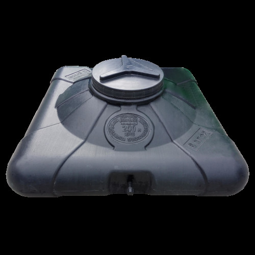 Пластиковая емкость для летнего душа стандартно черного цвета, изготовлена из полиэтилена.