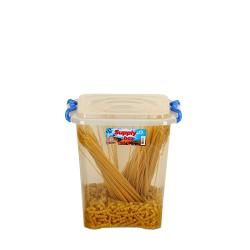 Характеристики Обсяг: 7,5 літрів. Вага: 350 грам. Верх 23,5x22 см, висота без кришки 24 см, з кришкою 25,5 см, низ 16x16 см. Контейнер з кришкою на 7,5 літрів для зберігання харчових продуктів.