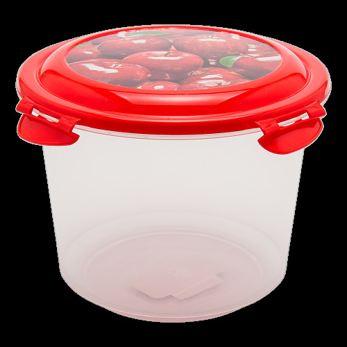 Характеристики Обсяг: 1,3 л Діаметр / висота: 16,5 / 12 cм Колір: прозоро-червоний Матеріал: поліпропілен Опис і застосування Пластиковий контейнер, об'ємом 1,3 л. Виготовлений з міцного поліпропілену. Пластиковий контейнер призначений для зберігання їжі. Термін придатності не обмежений.