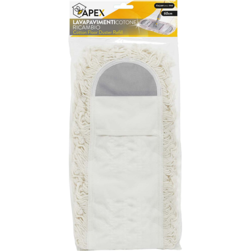 Запаска для швабри ТМ "Apex", виготовлена ​​з бавовни. Призначена для вологого і сухого прибирання будь-яких твердих поверхонь, таких, як ламінат, плитка, паркет та ін. Кріплення-кишеньки виготовлені з міцної щільної тканини, прошиті потрійним швом, що забезпечить запасці (мопу) тривалий термін служби. Запаску можна прати у пральній машині при t 40 С. Підходить для швабри А10826.