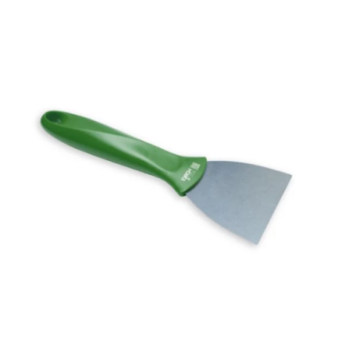 Скребок з лезом з нержавіючої сталі швидко видаляє наліт і бруд, що осіли на поверхнях. Незамінний партнер для обробки їжі та ідеальний для нарізання тіста. Оснащений отвором проти крапель для належного зберігання. Інноваційне маркування гарантує відстеження по всьому ланцюгу поставок. Ширина леза - 75 мм.