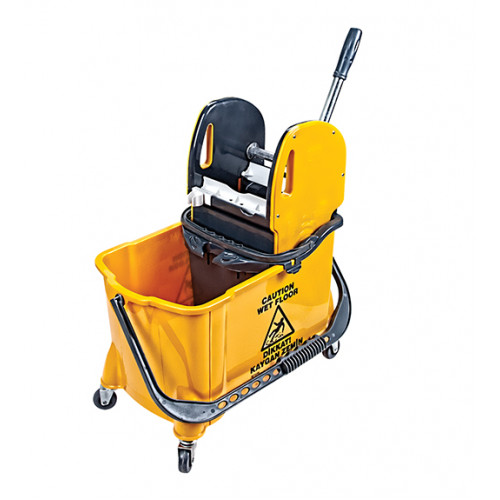 Зручний місткий візок (відро на колесах) з віджимом для прибирання приміщень. Складається з трьох частин: відро велике для чистої води, відро маленьке для брудної води і віджим. За допомогою віджиму Ви легко зможете видалить зайву вологу. Велике та маленьке відро легко знімається для заміни брудної води. Ручка дозволяє управляти візком просто і ефективно. Даний продукт успішно використовується для прибирання у всіх приміщеннях будь-якої площі, будь-якого призначення, будь-якого рівня.