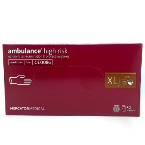 Купити Рукавички AMBULANCE HIGH RISK латекс 19г / Сині, в боксі роз O9