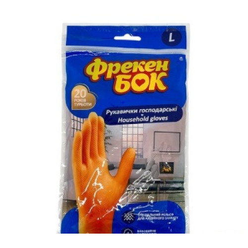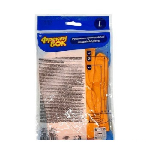 Рукавички універсальні господарчі ТМ Фрекен БОК з внутрішнім бавовняним напиленням. Виготовлені з високоякісного натурального латексу. Зовнішня рельєфна сторона рукавички забезпечує впевнений захват та фіксацію слизьких предметів. Для використання приватними особами у побуті. Не є засобом індивідуального захисту.
