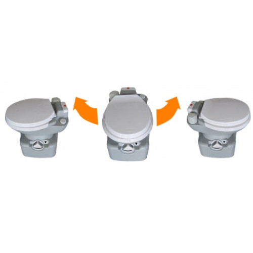 Ще одне, немало важливе, перевага цього біотуалету це можливість повертати верхню частину щодо нижньої частини на 180 градусів. Це дозволяє заощадити простір в місці локації біотуалету.