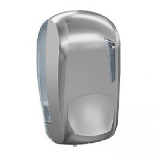 Дозатор рідкого мила з прозорого / сріблястого пластику з кнопкою. Призначений для використання в санітарних приміщеннях із середньою відвідуваністю. Можна використовувати рідке мило і шампунь.