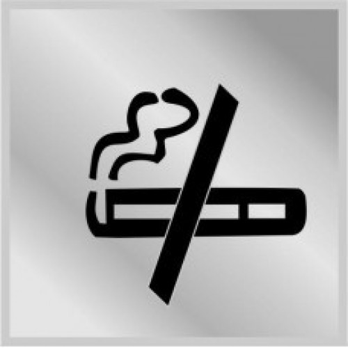 Табличка Не палити призначена для позначення місць, де не можна курити. Колір зображення - чорний, спосіб нанесення зображення - випалювання лазерним променем. Розміри - 10х10 см. Табличка виготовлена з металу і має закруглені кути.