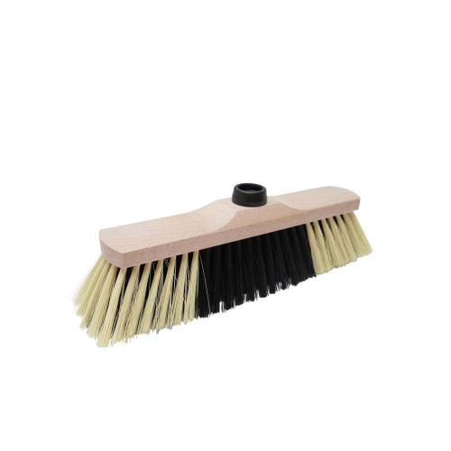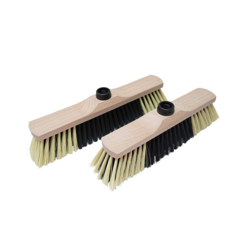 Ця щітка на дерев'яній основі з щетиною з полівінілхлориду (ПВХ) використовується для підмітання промислових підлог таких, як асфальт, кварц, нерафінований бетон і т.п. З'єднання з рукояткою з отвором виконано з пластику.