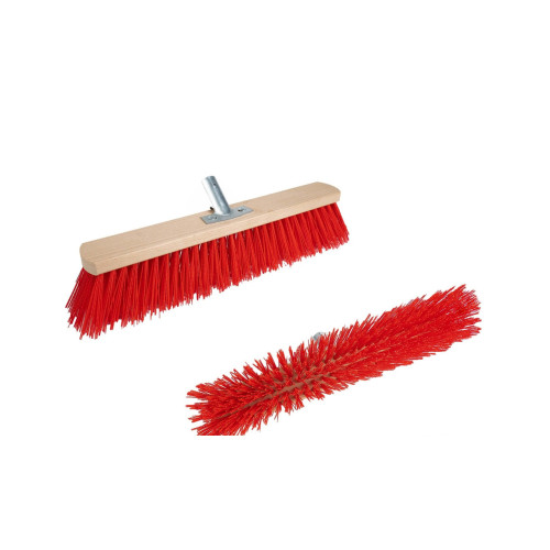 Ця щітка на дерев'яній основі з щетиною з полівінілхлориду (ПВХ) використовується для підмітання промислових підлог таких, як асфальт, кварц, нерафінований бетон і т.п. З'єднання з рукояткою з отвором виконана з металу. Розмір щітки - 300х55х150 мм Вага щітки - 0.35 кг. Щіток в коробі -10 шт. Щітка для вулиці 30 см. Тип волокна: PР червоний Тип колодки: дерево, бук, з металевим кріпленням для держака