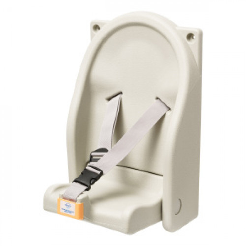 Допоможе забезпечити безпеку дітей клієнтів при користуванні санітарної кімнатою. Легко кріпиться на стіну кабінки туалету, вбиральні та будь-якого місця, де батькам необхідно мати вільні руки, і, в складеному стані, займає дуже мало місця, 145 мм. Кріпиться за допомогою дюбелів (анкерів). Зроблено з міцного антибактеріального HDPE пластика (текстурованого поліетилену високої щільності з антимікробної захистом Microban). Нейлонові ремені безпеки одягаються через плечі і між ніг і допоможуть безпечно зафіксувати дитини.