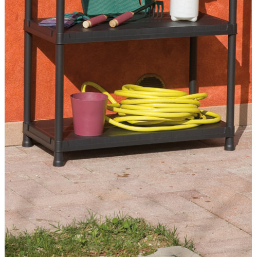 Характеристики Довжина / ширина / висота: 80 х 40 х 180 см Колір: чорний Кількість полиць: 5 Розмір упаковки: 100 x 40 x 21 см Опис і застосування Представляємо універсальний пластиковий стелаж на 5 полиць Universal 84-5. Стелаж можна застосовувати для побутових потреб: зберігання будь-яких неважких вантажів будинку, в гаражі, в офісі. Так само, використовують для зберігання або демонстрації товарів в магазинах, торгових рядах, невеликих складах, підсобних приміщеннях. Пластиковий стелаж чорного кольору не мазкий і відмінно впишеться в будь-який інтер'єр. Пластик, на відміну від металу і дерева, не схильний до корозії, йому не страшна волога.