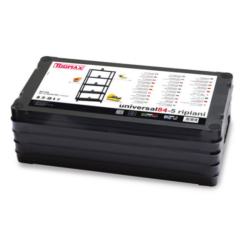Для додаткової стійкості передбачена можливість кріплення стелажа до стіни. Простота і легкість складання; компактність; Час збірки 10 хвилин; Максимальне навантаження на полицю - до 50 кг; Продукція Toomax має сертифікацію TUV; Виготовлено в Італії. Відео-презентація виробництва
