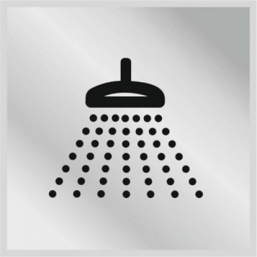 Табличка ДУШ призначена для позначення душової кімнати. Колір зображення - чорний, спосіб нанесення зображення - випалювання лазерним променем. Розміри - 10х10 см. Табличка виготовлена з металу і має закруглені кути.