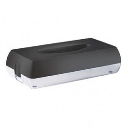Тримач серветок косметичних COLORED Тримач серветок косметичних COLORED призначений для стаціонарного розміщення коробки з косметичними серветками. Модель призначена для загального користування. Виготовлений з удароміцного пластика, покритого чорною фарбою "Soft Touch", що створює додатковий захист корпусу. Закривається за допомогою пластикових засувок. Економічність витрати за рахунок поштучного відбору серветок. Легкість перезаправлення - мінімум обслуговування. Стильний варіант до будь-якої туалетній кімнаті. Є можливість кріплення до стіни.