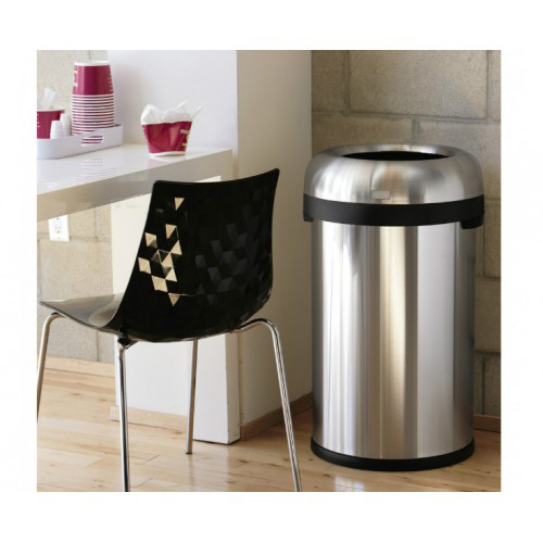 Наша найбільша відкрита урна може полегшити очистку їжі з підносів і дозволяє кидати великі предмети, такі як коробки від піци. Конструкція з нержавіючої сталі з легко знімається кришкою і дуже велика ємність роблять її ідеальним вибором для комерційних підприємств з великим рівнем відвідування, таких як ресепшн в готелях, ресторанах. На дні відра прикріплені гумові прокладки, які дозволяють йому не ковзати по поверхні, не дряпати підлогу і бути стійким. Підходять мішки з кодом Y.