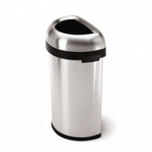 Урна відкрита напівкругла - зручна і практична зі знімною верхньою частиною - легко кидати сміття на ходу. Плоска задня стінка дозволяє щільно встановлювати урну біля стіни. Широкий отвір використовується для легкого розміщення об'ємного сміття. Великий обсяг урни ідеальний для використання в вестибюлях готелів, ресторанах і в банкетних залах. Товсті стінки з нержавіючої сталі роблять виріб стійким до ударів і подряпин. Кришка легко знімається і швидко замінюється сміттєвий мішок. Завдяки бічним ручкам із пластику урну легко переносити.