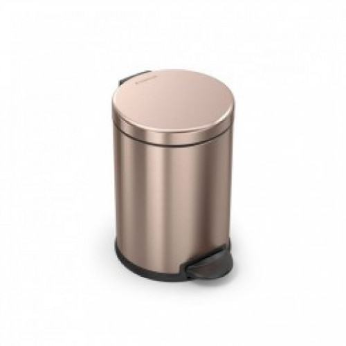 Відро з педаллю невеликого розміру з металу рожево-золотистого кольору. Розміститься в найменшій санітарній кімнаті. Можна використовувати на будь-якій зручній горизонтальній поверхні. Кришка легко відкривається натисканням на педаль. Всередині розміщено пластикове відерце. Рекомендуємо використовувати спільно з одноразовими поліетиленовими мішками. Підходить мішок з кодом A. Тип установки - для підлоги. Призначено для місць з низьким рівнем відвідування: офіси, стоматологічні кабінети, масажні салони, процедурні.