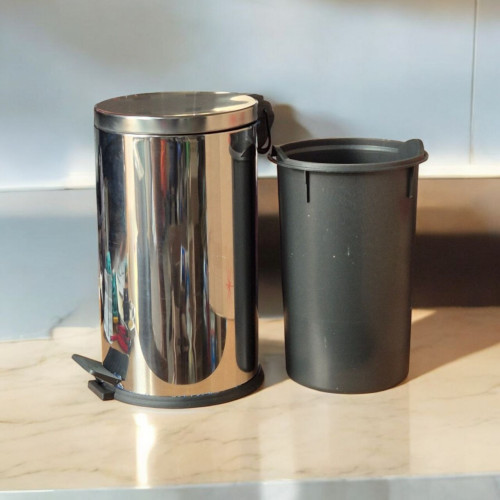 Відро для сміття з нержавіючої сталі AISI 430, об'ємом 16 л, має педаль, кришку, внутрішнє пластикове відро Таке відро стане незамінним помічником на кухні, туалеті, офісі. Матеріал давно зарекомендував себе як один з найбільш довговічних і стійких до корозії. Педаль помітно полегшує використання пристосування і запобігає поширенню неприємних запахів. Плавний механізм закриття кришки забезпечує практично безшумний застосування. Переваги: стійке до відколів і подряпин хромоване покриття; якісне виконання всіх механізмів; оснащеність системою фіксації сміттєвого мішка; естетичний зовнішній вигляд. Характеристики: Габаритні розміри: діаметр 24,5 см, висота 44,4 см Матеріал: Нержавіюча сталь Колір: Хромований Обсяг, л: 16 Тип: Відро з педаллю Особливість: є внутрішнє відро Виробник: Домакс Країна виробник: Туреччина