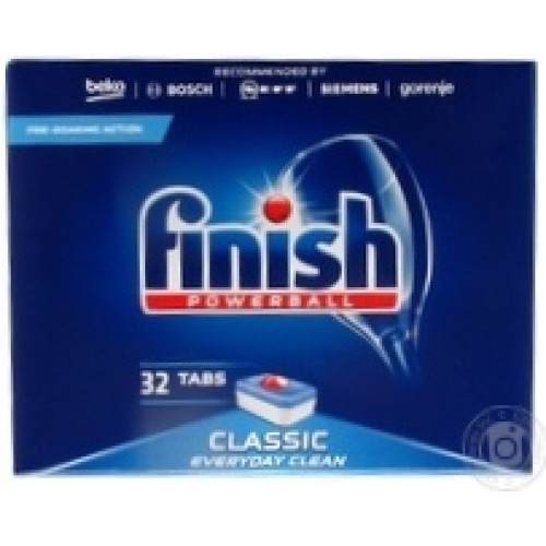 Засіб для миття посуду в посудомийних машинах - таблетки Finish Powerball Classic являють собою миючий порошок, спресований в таблетки, тобто мають ті ж властивості, що і порошок Finish Classic: компонент StainSoaker з ефектом замочування проникає в засохлі забруднення і дозволяє видаляти їх без замочування вручну.
